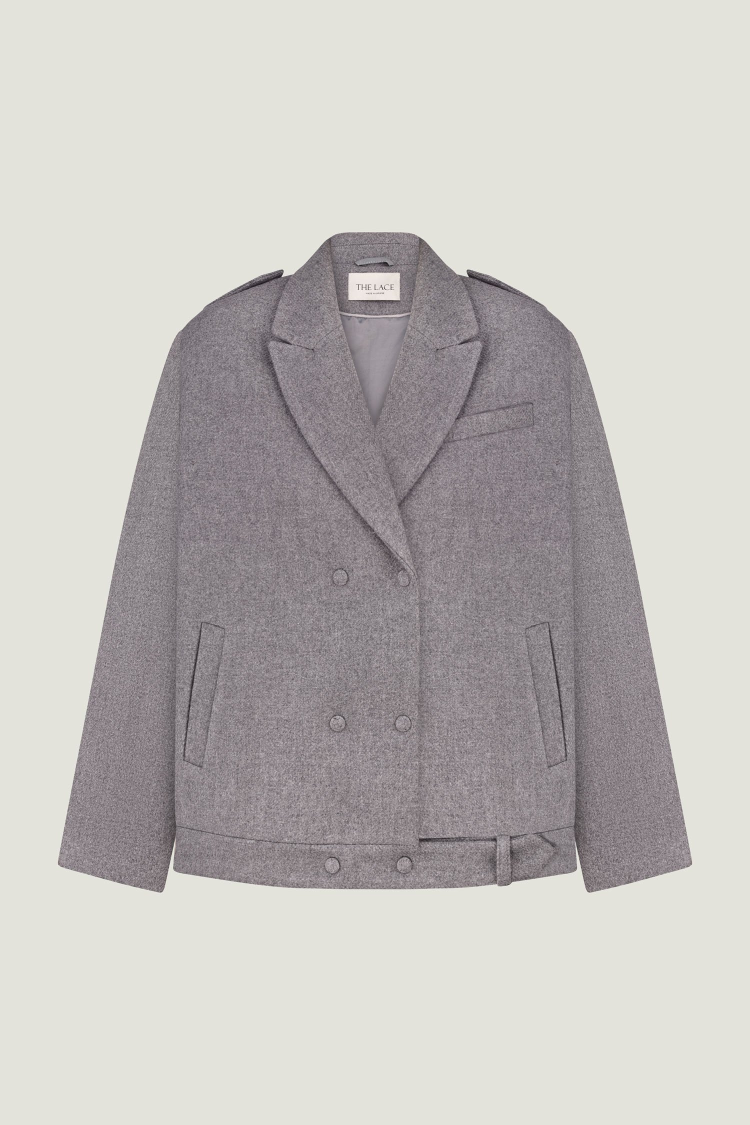 Women’s wool coat-jacket in gray. The coat is made of thick wool fabric. Structured model with functional side pockets, fastens with buttons. Stylish, warm and cozy coat for a variety of looks for the autumn-winter season.