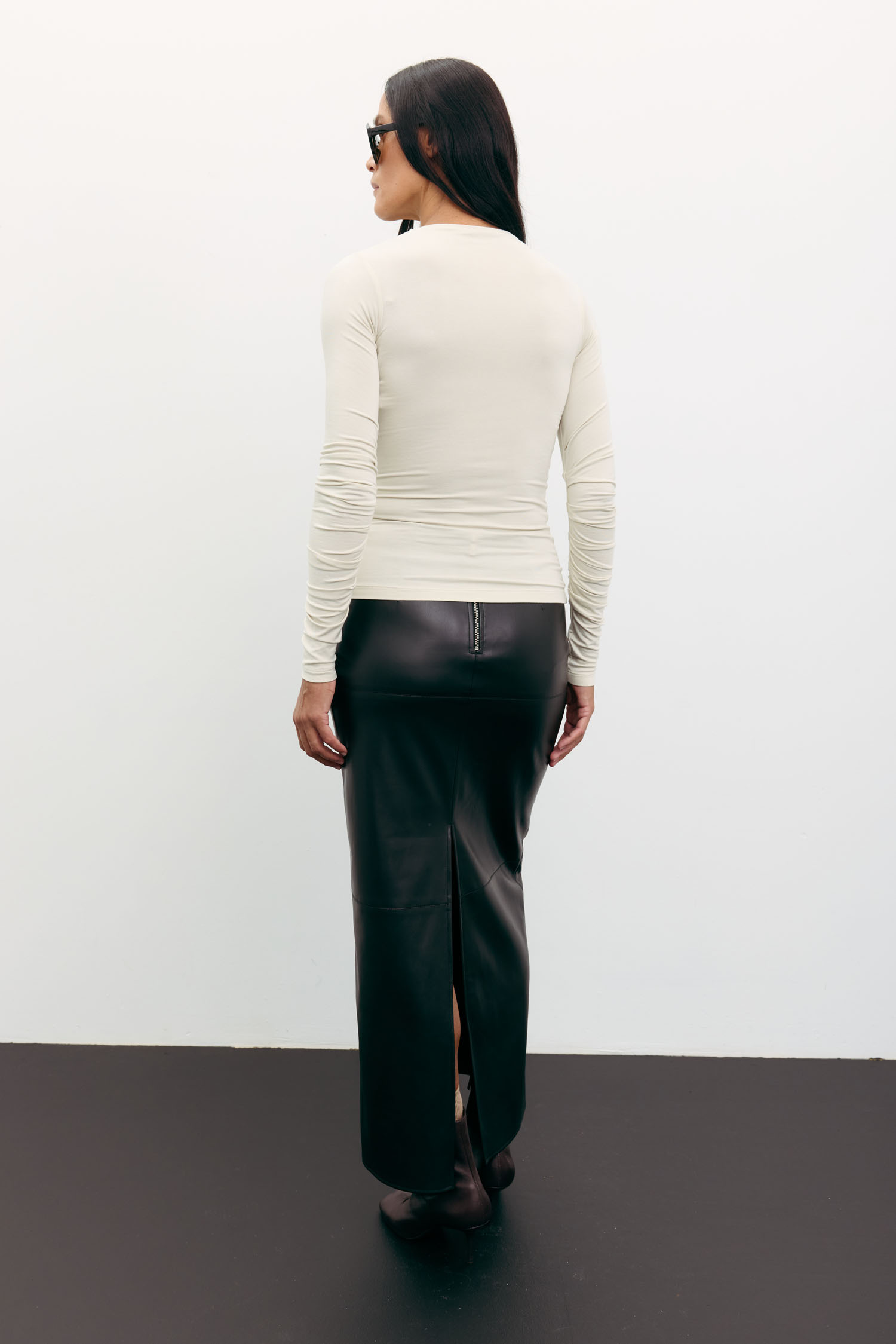 Женская черная юбка макси из эко-кожи. Стильная юбка прямого кроя с идеальной посадкой по фигуре. Застёгивается на молнию. Модель, которая прекрасно сочетается с любыми элементами гардероба – от рубашек и топов до уютных свитеров и пальто. Идеальный выбор для осеннего сезона.