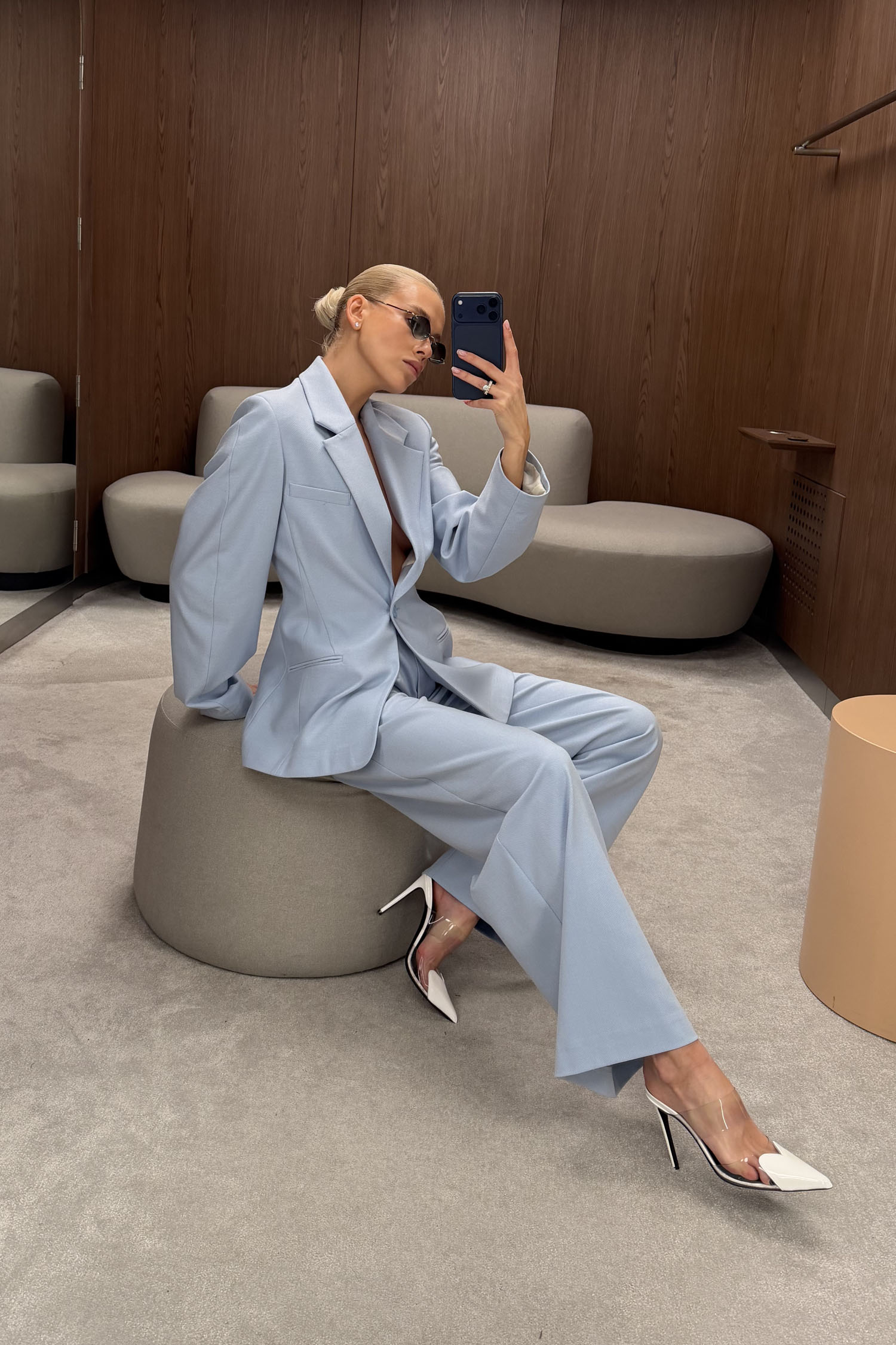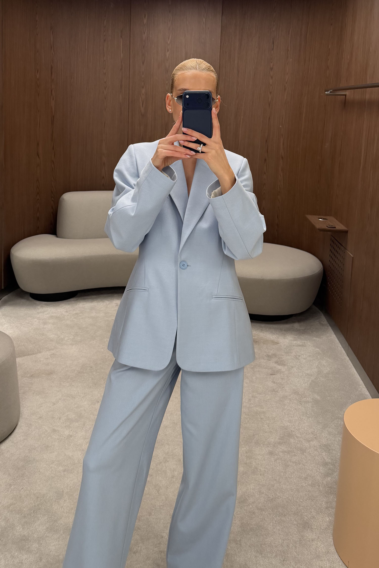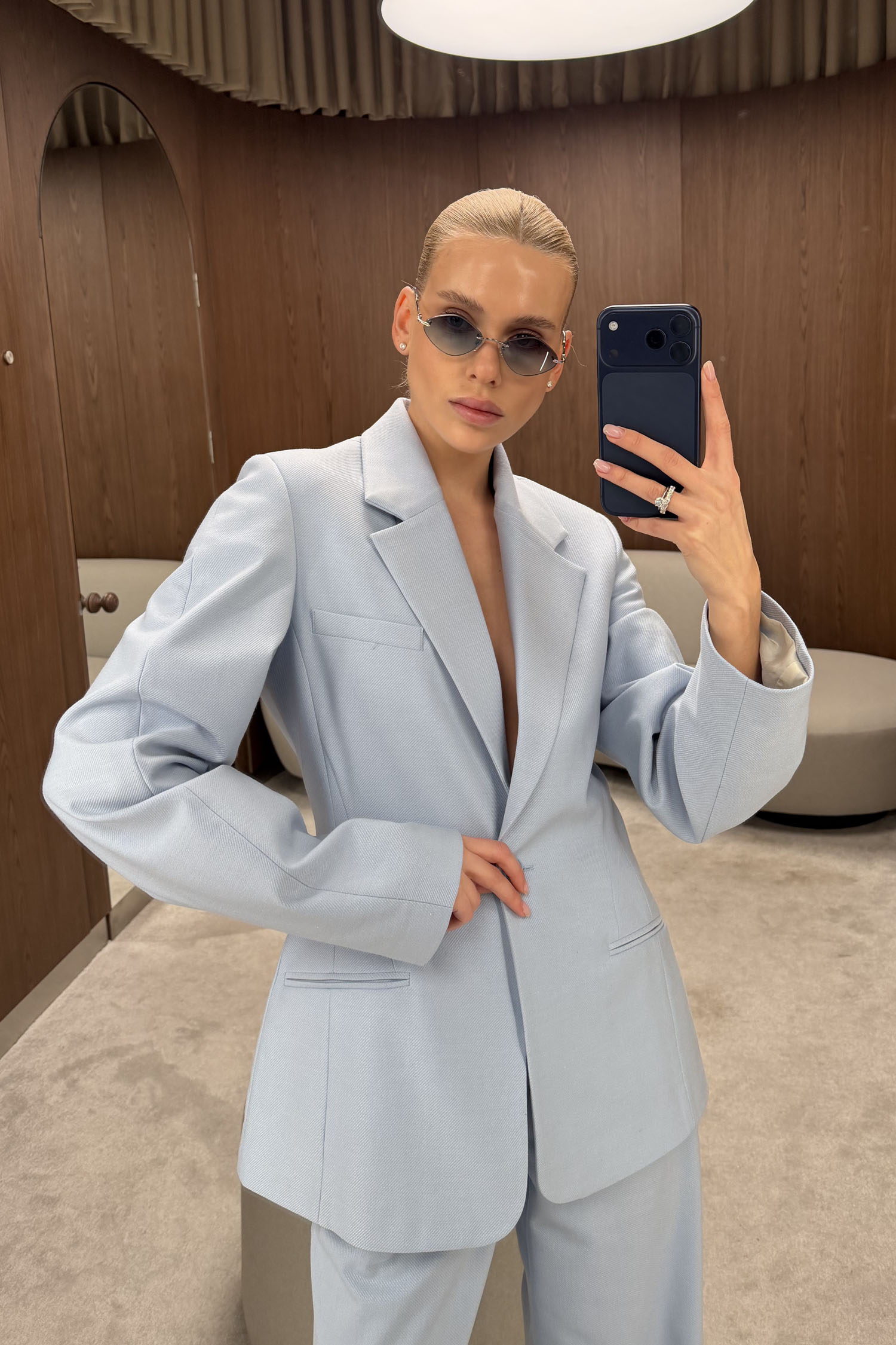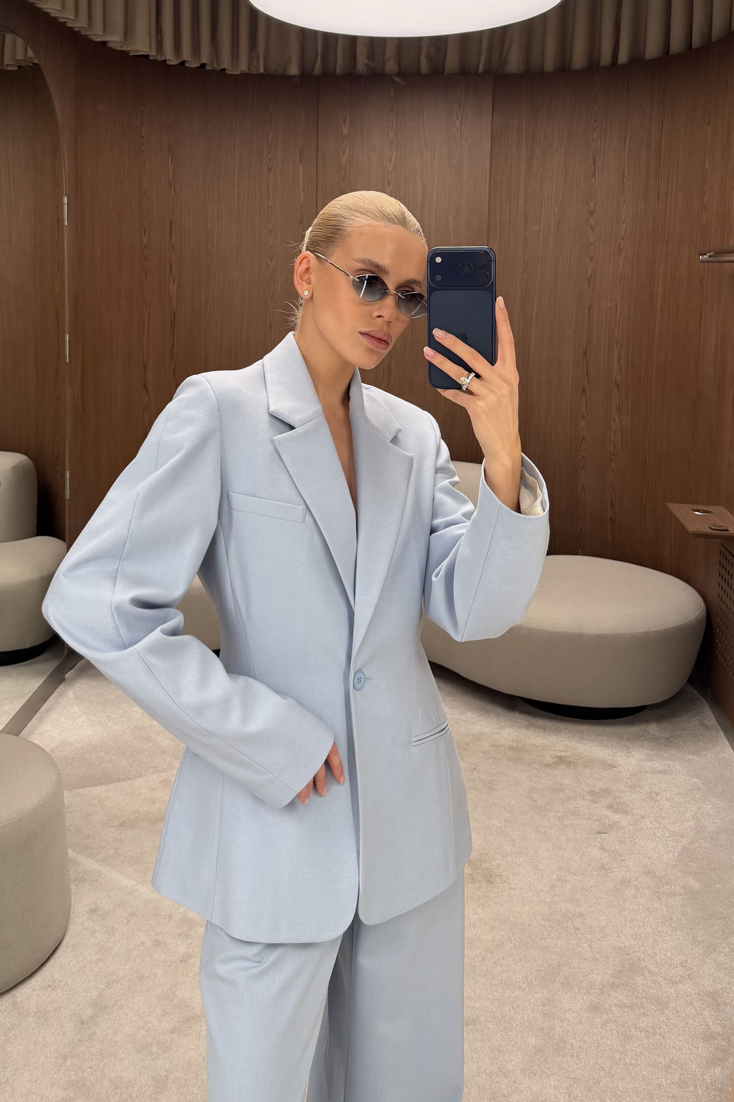 Жіночий жакет в ніжно-блакитному кольорі. Жакет з цупкої костюмної тканини, яка добре тримає форму. Модель з об’ємними рукавами та приталеним кроєм, ідеально підкреслює лінію талії, додаючи виразності образу. Стилісти The Lace радять поєднувати жакет із брюками в тон для створення вишуканого образу.